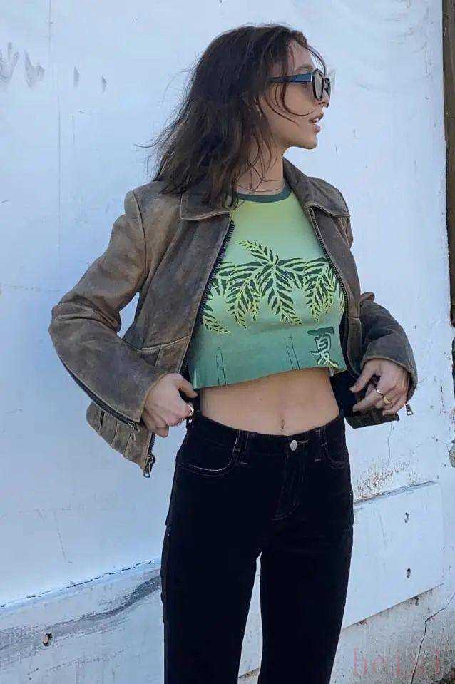 皮衣的款式可以根据身材特点来选择,身材较小的女生可以选择今年很流行的crop top款式的皮夹克来拉长比例,突出腰线。