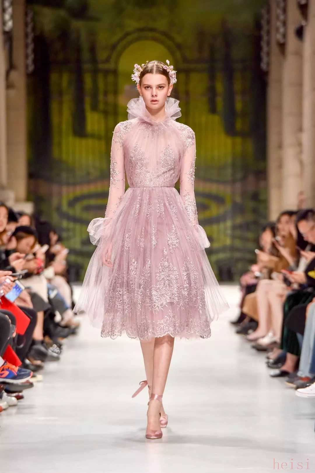 柔和的色调高定款在秀场上挥洒着浪漫主义的味道。