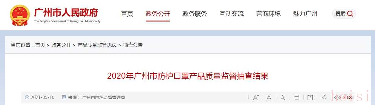 中国质量新闻网讯 近日,广州市市场监督管理局公布2020年广州市防护口罩产品质量监督抽查结果。2020年第四季度,广州市市场监督管理局对防护口罩产品质量进行了监督抽查,共抽查了41批次样品,经检验,有23批次产品不符合标准要求。