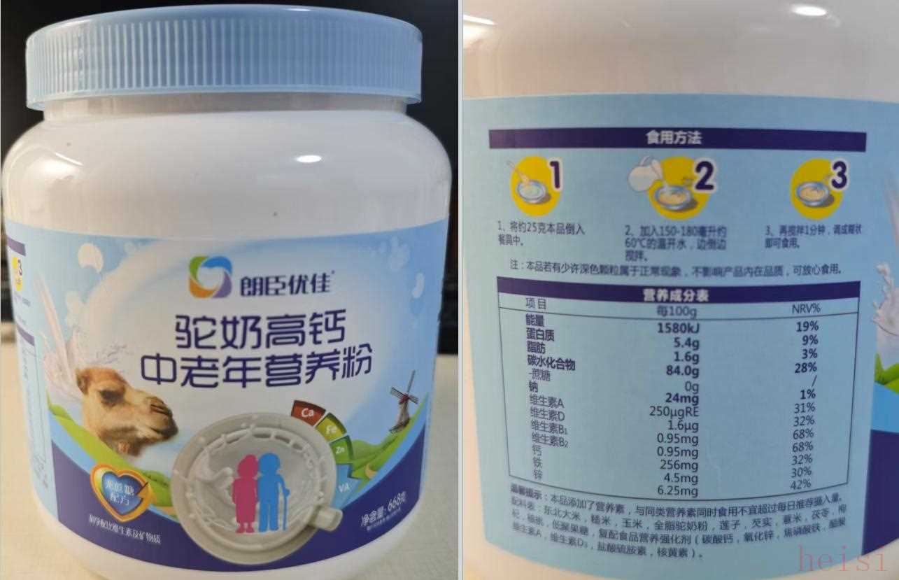 朗臣优佳驼奶高钙中老年营养粉产品信息。 新京报记者 郭铁 摄