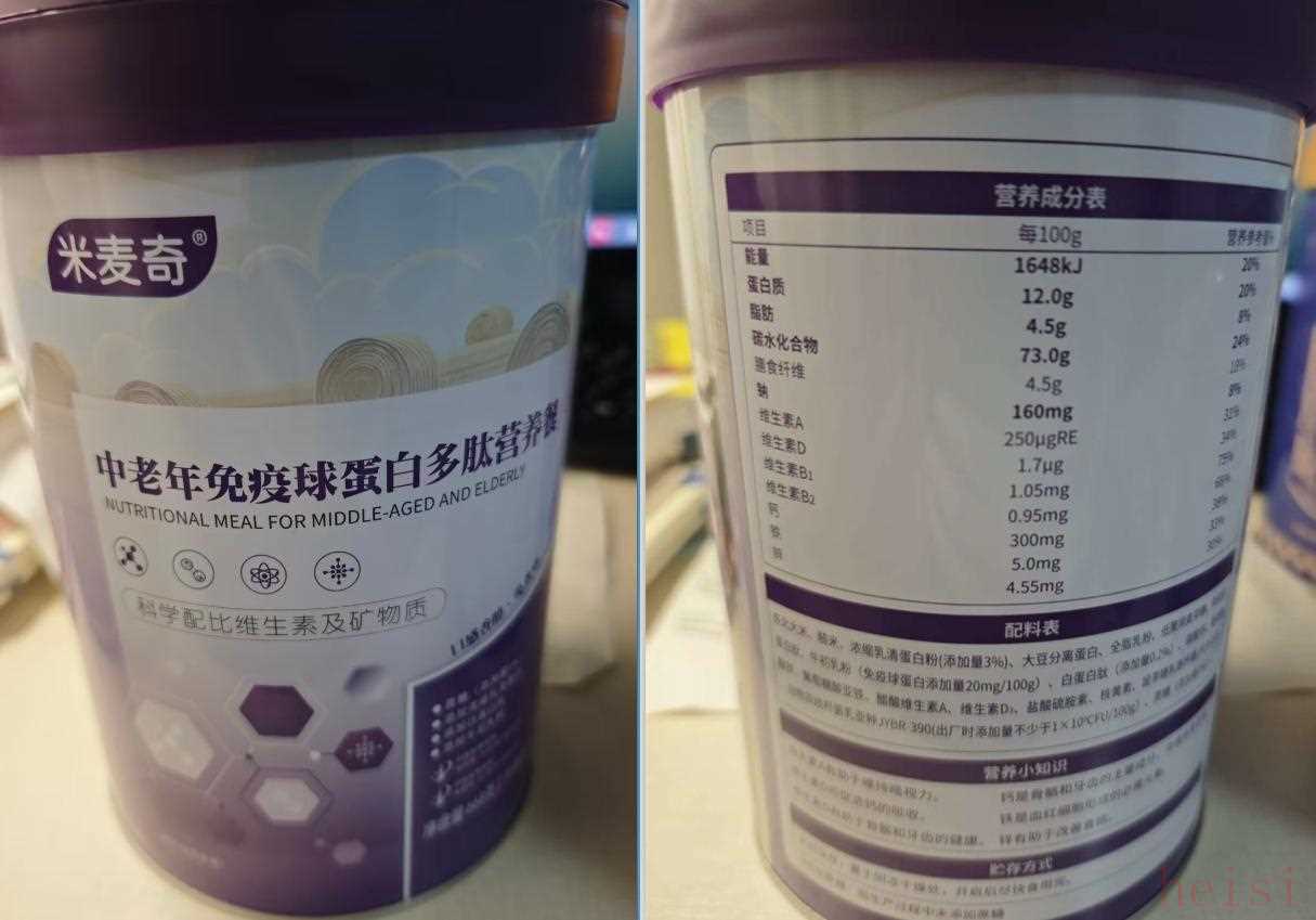 “米麦奇”中老年免疫球蛋白多肽营养餐产品信息。 新京报记者 郭铁 摄
