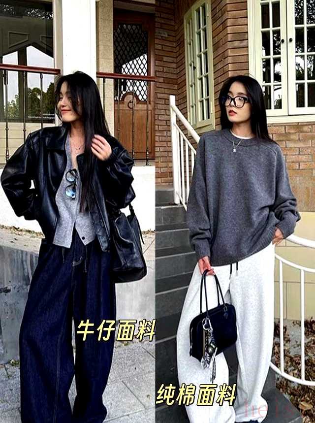 第二条,西装阔腿裤。这条裤子是职场女性的秋冬救星。它彻底摆脱了传统西裤的刻板印象,宽大的裤腿能藏住你腿上所有的不完美,不管是腿粗还是腿不直,都能一秒隐形。今年的新款在裤缝处增加了压褶工艺,让裤子的垂坠感更好,走起路来都带风。上半身搭配一件短款皮衣,又飒又利落。换成乐福鞋,又能轻松营造出那种不费力的知识分子风。