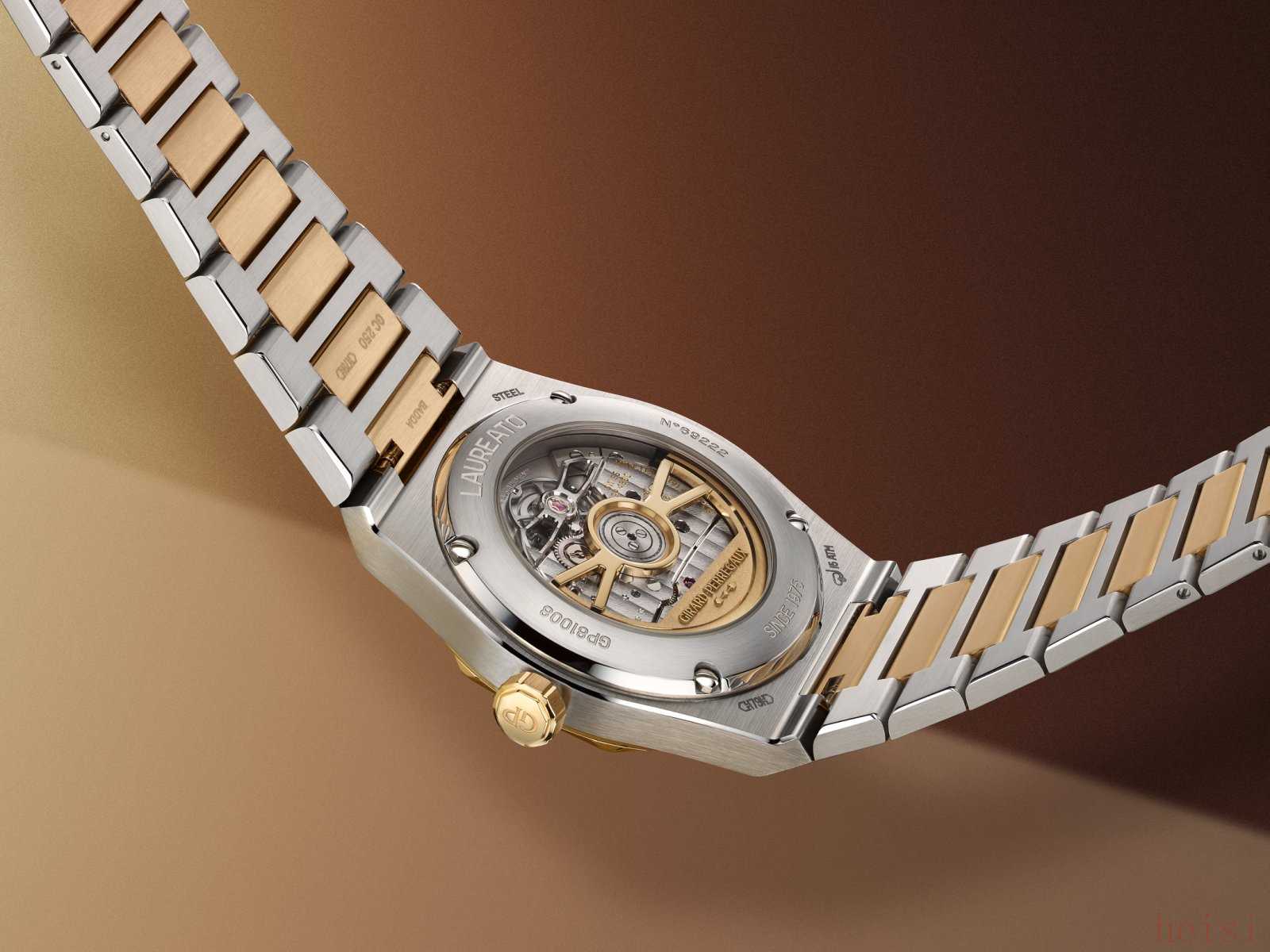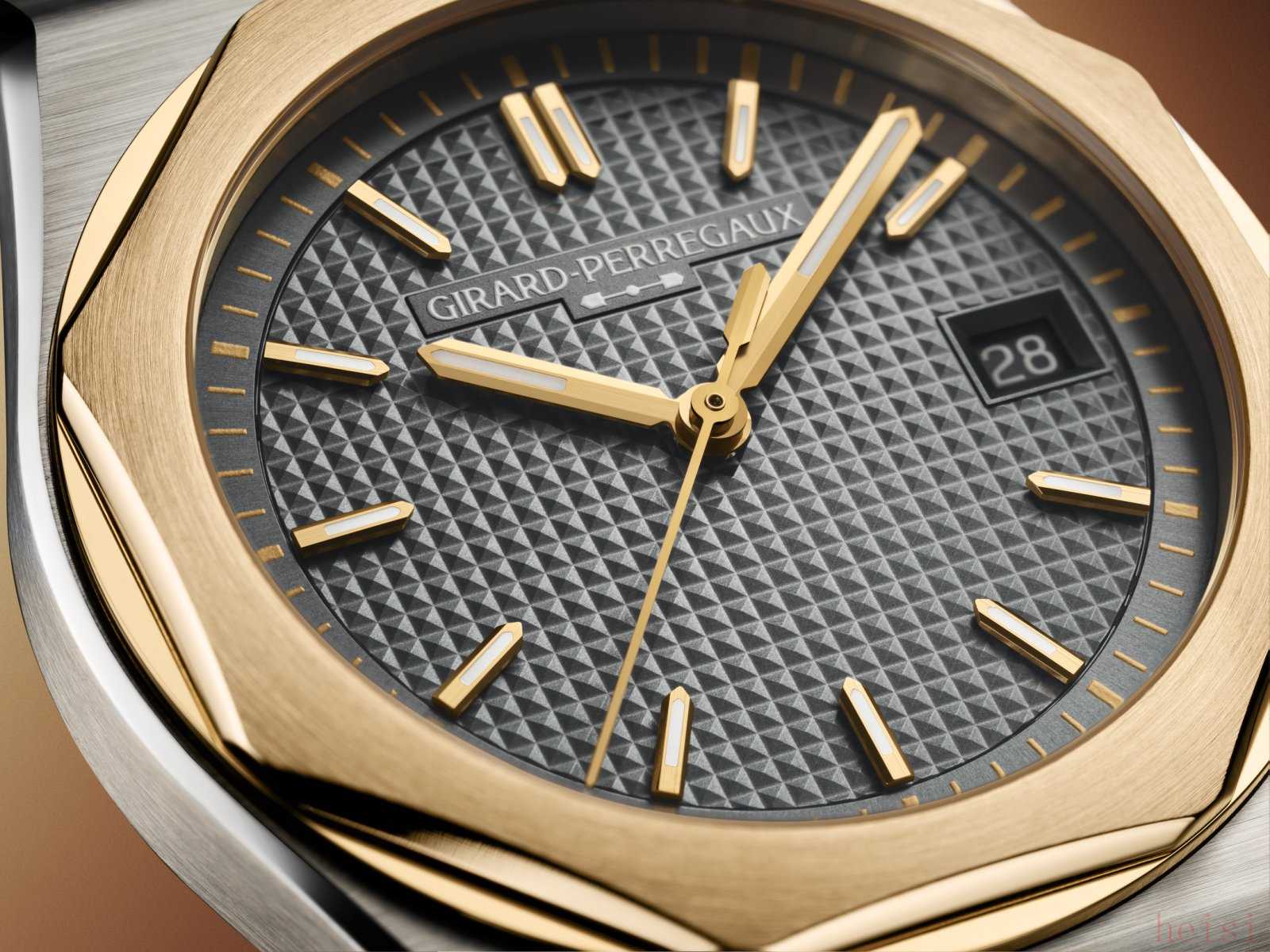 全新Laureato桂冠系列50周年纪念款腕表采用39毫米直径、仅9.8毫米厚度的表壳,以精钢与3N黄金的材质组合致敬1975年首创的双色设计。新表的酒桶形表壳经重新雕琢后,角度更为锐利,倒角更加鲜明,表链衔接也更加流畅。