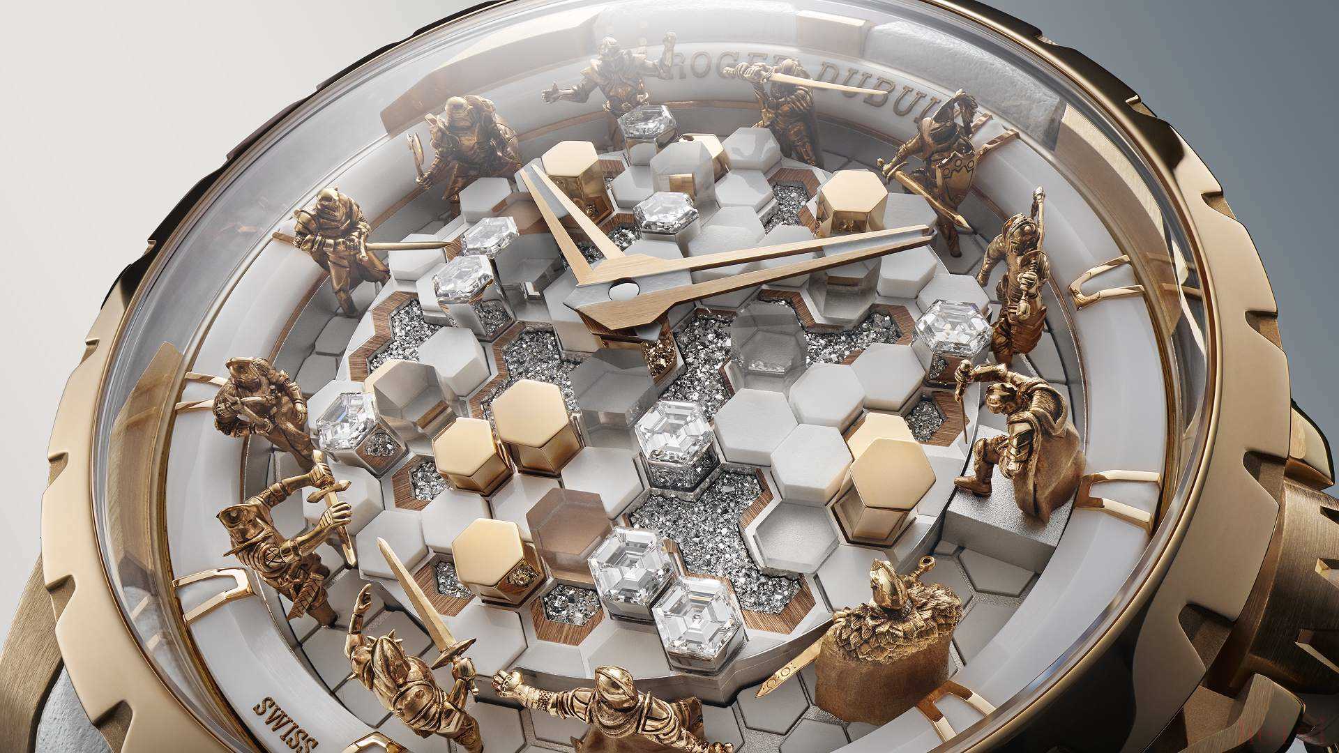 圆桌骑士系列是罗杰杜彼品牌的标志性作品线,首批作品诞生于2013年,以亚瑟王与圆桌骑士的传奇史诗为灵感。