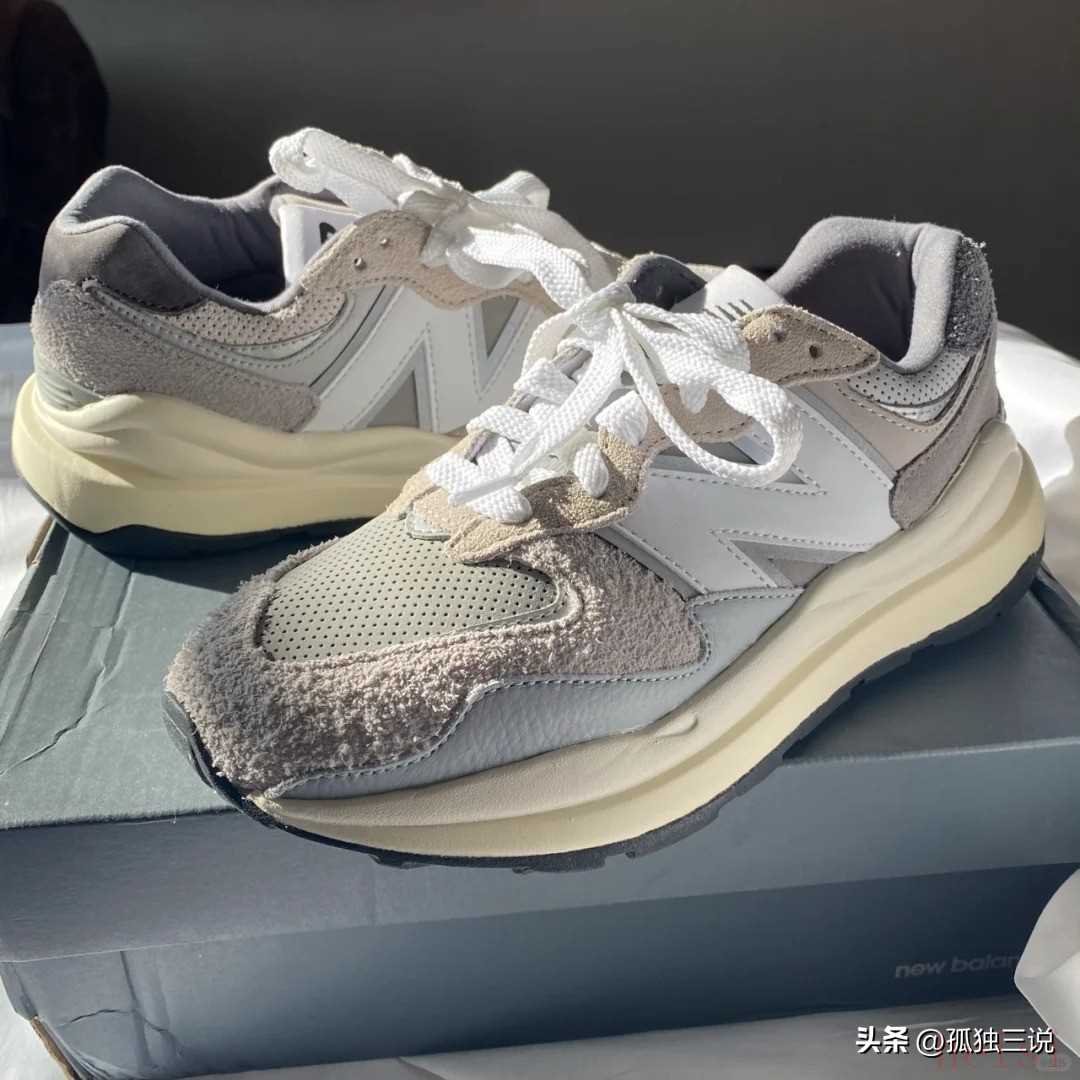最后要推荐的是574元祖灰,这双是胡杏儿小姐姐的同款,上脚后才懂为什么明星都爱穿——有4cm左右增高,而且是内增高设计,完全看不出来,视觉上腿直接拉长一截。鞋身灰色很柔和,配米色鞋底,男生穿显干净、女生穿显温柔,我之前穿它去参加朋友聚会,不管是休闲装还是稍正式的穿搭,搭著都不违和,颜值和实用性都在线。