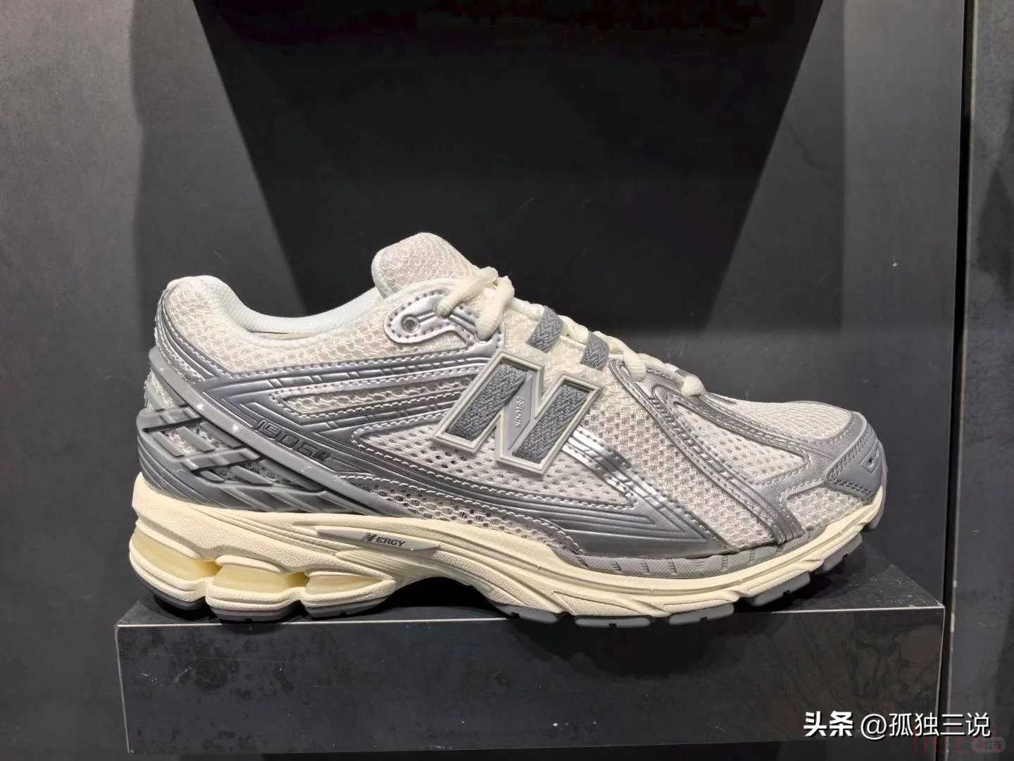 喜欢机能风的话,1906元祖灰绝对能戳中你。第一次穿它去看展,朋友说我像从未来穿越过来的——鞋面用了多层拼接材质,银色金属扣和透明鞋带孔很有设计感,鞋舌织标还能拆卸,想低调就换纯色款,想吸睛就用原配。不过鞋帮稍高,穿脱得费点劲,但上脚效果绝对值得,男生女生穿都很飒。