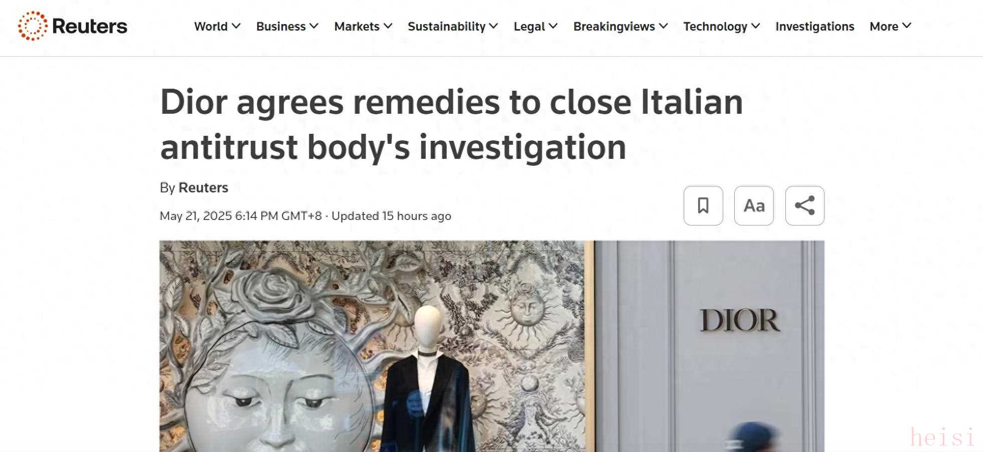 根据最新的报道,意大利反垄断监管机构(Autorità Garante della Concorrenza e del Mercato, AGCM)已经"结束"了对法国奢侈品巨头迪奥(Dior)集团在意大利市场行为的相关调查。