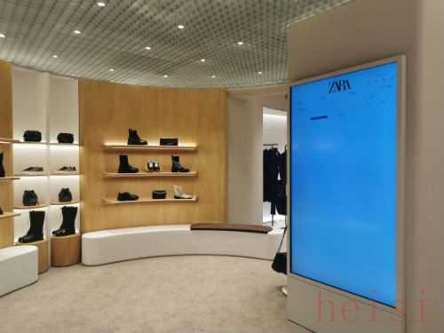 门店相关负责人向经济观察网记者介绍,除了空间上的全新调整外,这家旗舰店是Inditex集团新零售科技的集合体。二楼服装区的一处电子屏幕是新零售科技的代表。为了让门店有足够的空间,这里摆放的鞋品仅此一件,想要进一步了解鞋品的更多信息,顾客只需要轻点电子屏幕就能获取关于该商品的全部信息,再点击“发送试穿需求”,楼下的仓库工作人员第一时间便收到信息,将商品送至顾客等候处。除此之外,电子屏幕与Zara线上官方网店直接连通,可以办理线上查询和线上下单等其它业务。
