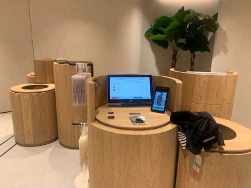 智能化还体现在试衣间。只要试衣间进入顾客,外部屏幕便显示绿色,顾客和工作人员在试衣间排队处就可以看到是否有空置试衣间,由此判断等待时间。