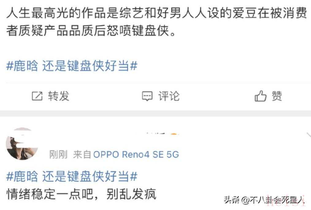 鹿晗的文案,被网友品出了阴阳怪气的味道,虽然粉丝辩解:鹿晗是在怼键盘侠,不要对号入座。