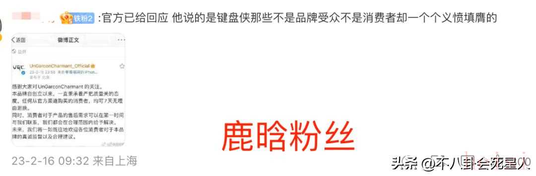 鹿晗的傲慢姿态,在这两条动态里原形毕露,衣服质量不好是事实,做错了就反思,立正挨骂,何必对网友开炮?何况,网友也并没有针对鹿晗。