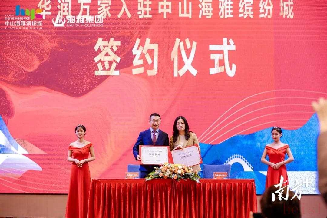 "华润万家(China Resources Vanguard)已经正式签约,将在中山南头海雅缤纷城(Zhongshan Nantou Haiya Plaza)开设一家大型超市。"