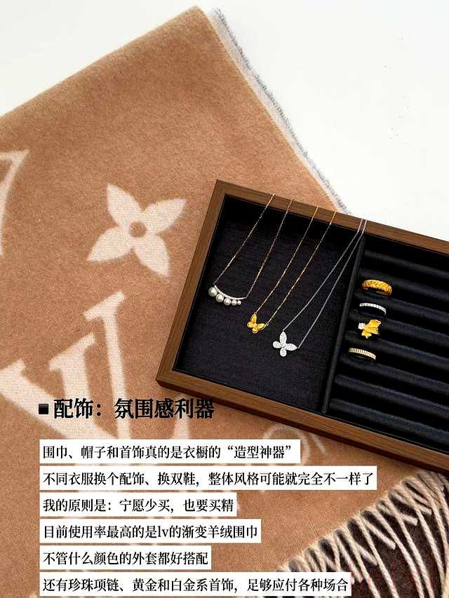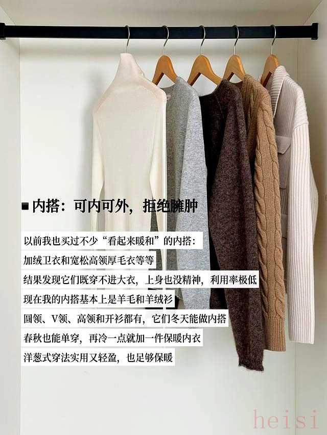 - "层次穿搭":通过层次穿搭来增加衣橱的丰富性,如内搭高领衫,外搭开衫,再配上大衣。
