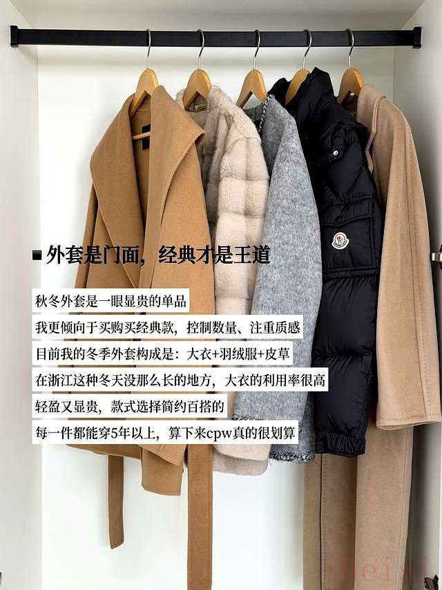 - "质感面料":选择质感好的面料,如羊绒、真丝、羊毛等,这些面料不仅舒适,还能提升衣橱的贵气感。