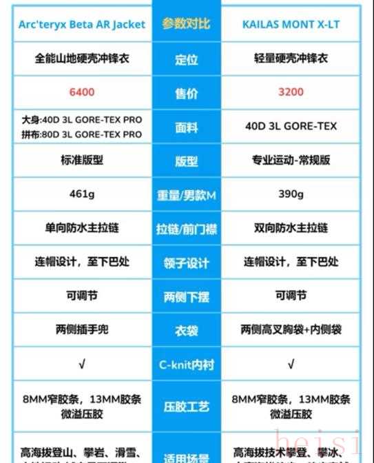 "为什么推荐:" 凯乐石是中国的老牌户外品牌了,技术积累比较深厚,尤其在冲锋衣领域有不错的口碑。它的冲锋衣以实用、可靠著称,很多户外爱好者会推荐。产品设计和剪裁也考虑到了亚洲人的身材特点,穿着合体性相对较好。