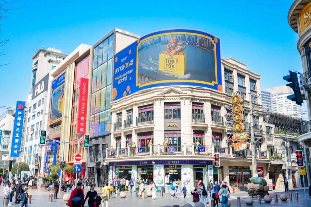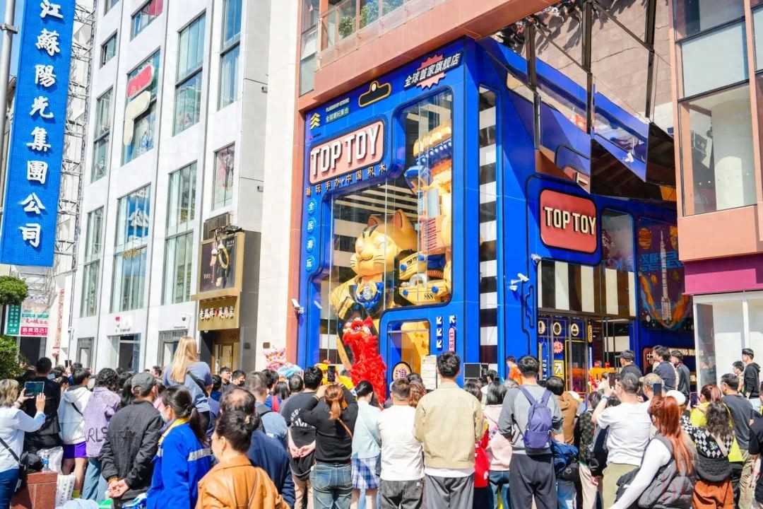 3月下旬,名创优品集团旗下的潮玩品牌TOP TOY的全球旗舰店在上海南京东路正式开业。至此,国内三家代表性的IP潮玩店均在南京东路落地——距离TOP TOY 150米处便是名创优品的MINISO LAND全球壹号店,距离600米处则是泡泡玛特的全球旗舰店。