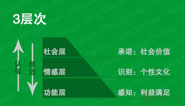 3层次论:马斯洛认为人的需求有五个层次,最高的层次是自我价值实现,这与品牌的三层次有异曲同工之妙。