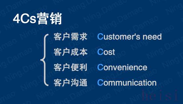 4Cs营销:研究营销者必不可少的理论是4P理论,但4P更多是站在企业自身的角度。随着竞争的加剧和第三产业在结构中的比重不断加大,以消费者的视角进行理论研究则是大势所趋。基于前述环境变化的驱使,美国学者罗伯特·劳特朋(Robert Lauterborn)在1990年正式撰文,4Cs于是闪亮登场。