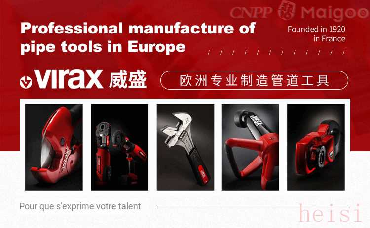 VIRAX创建于1920年法国,隶属于史丹利集团旗下,专业从事管道工具设计、制造及销售的大型产业化企业。VIRAX旗下产品种类超过2500个,生产涉及10000多种产品,市场占有率位居欧洲前列,产品广泛运用于流体行业,行销全球70多个国家和地区。