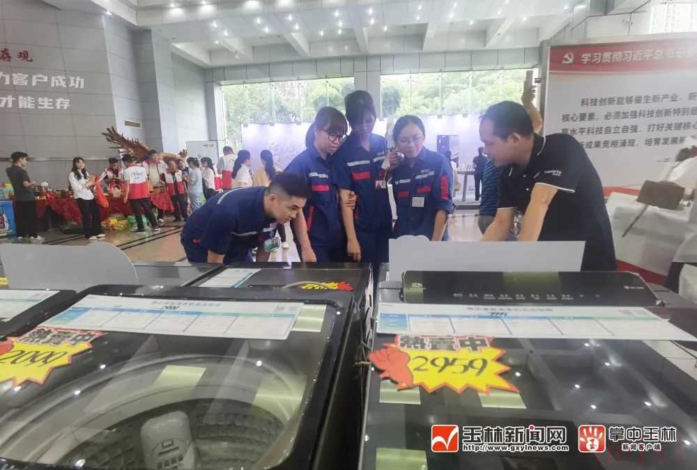 消费品以旧换新玉柴专场,玉柴职工在了解洗衣机功能和以旧换新政策。(资料图片)
