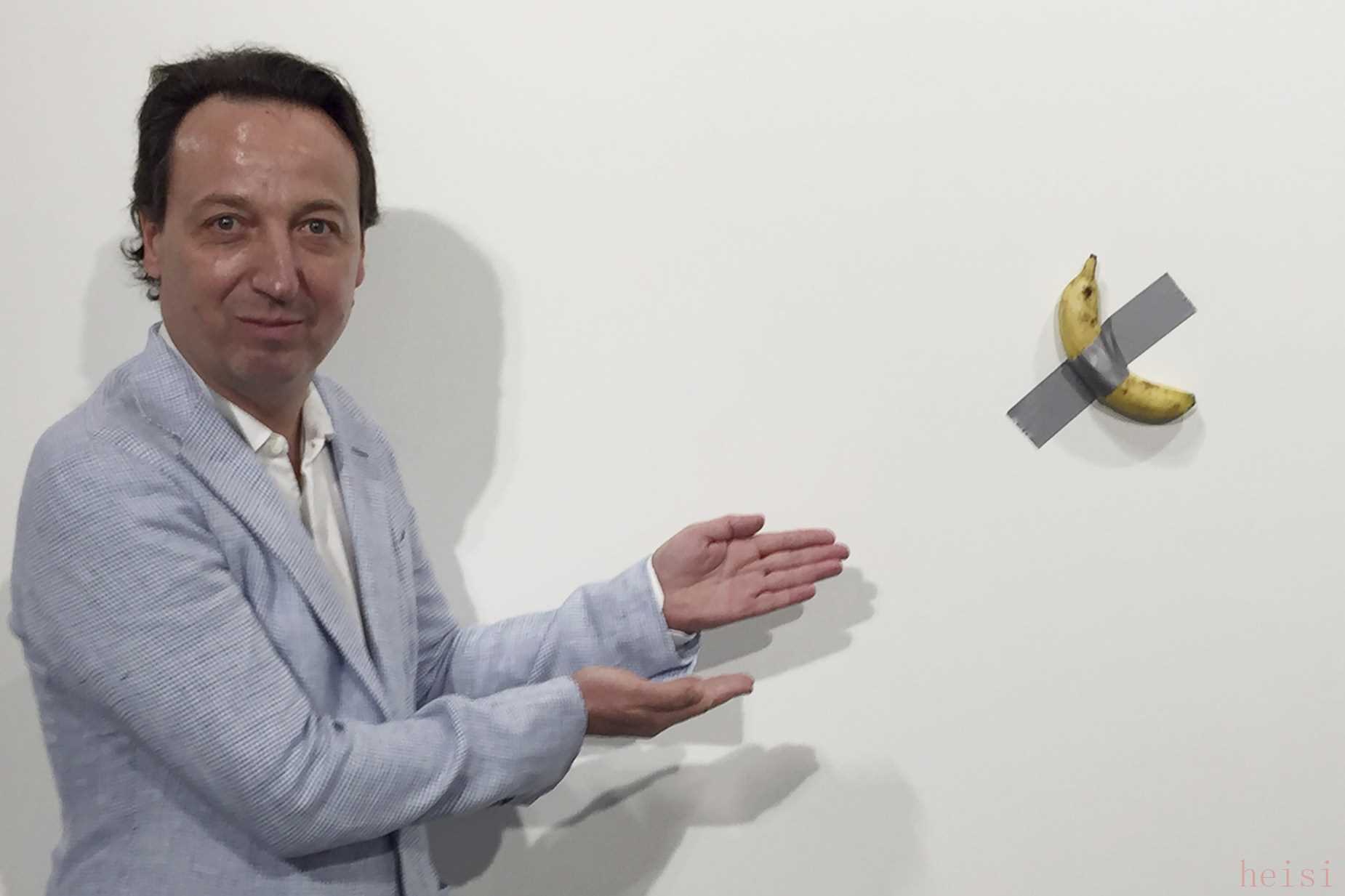 虽然不少人把艺术家Maurizio Cattelan当做一个恶作剧者,但展出并售卖这件艺术品的Perrotin 画廊煞有介事地表示它“既是全球贸易的象征,也是一种经典的幽默表达方式”。