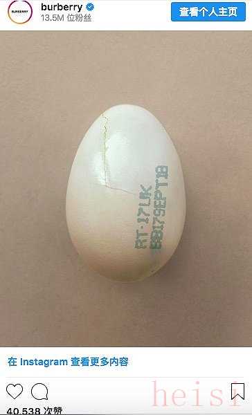 还有被视作Instagram“2019年度社交网络事件”的神秘鸡蛋——一颗平凡无奇、也没有什么好看背景和滤镜的鸡蛋,成为Instagram史上点赞数最多的一张照片,引来了包括Burberry在内品牌的模仿。