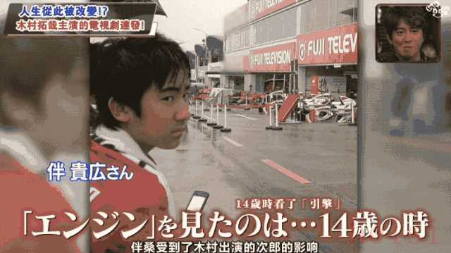 因为《引擎》里木村拓哉饰演一位热血的赛车手神崎次郎,伴贵广决心走上了赛车手的道路。
