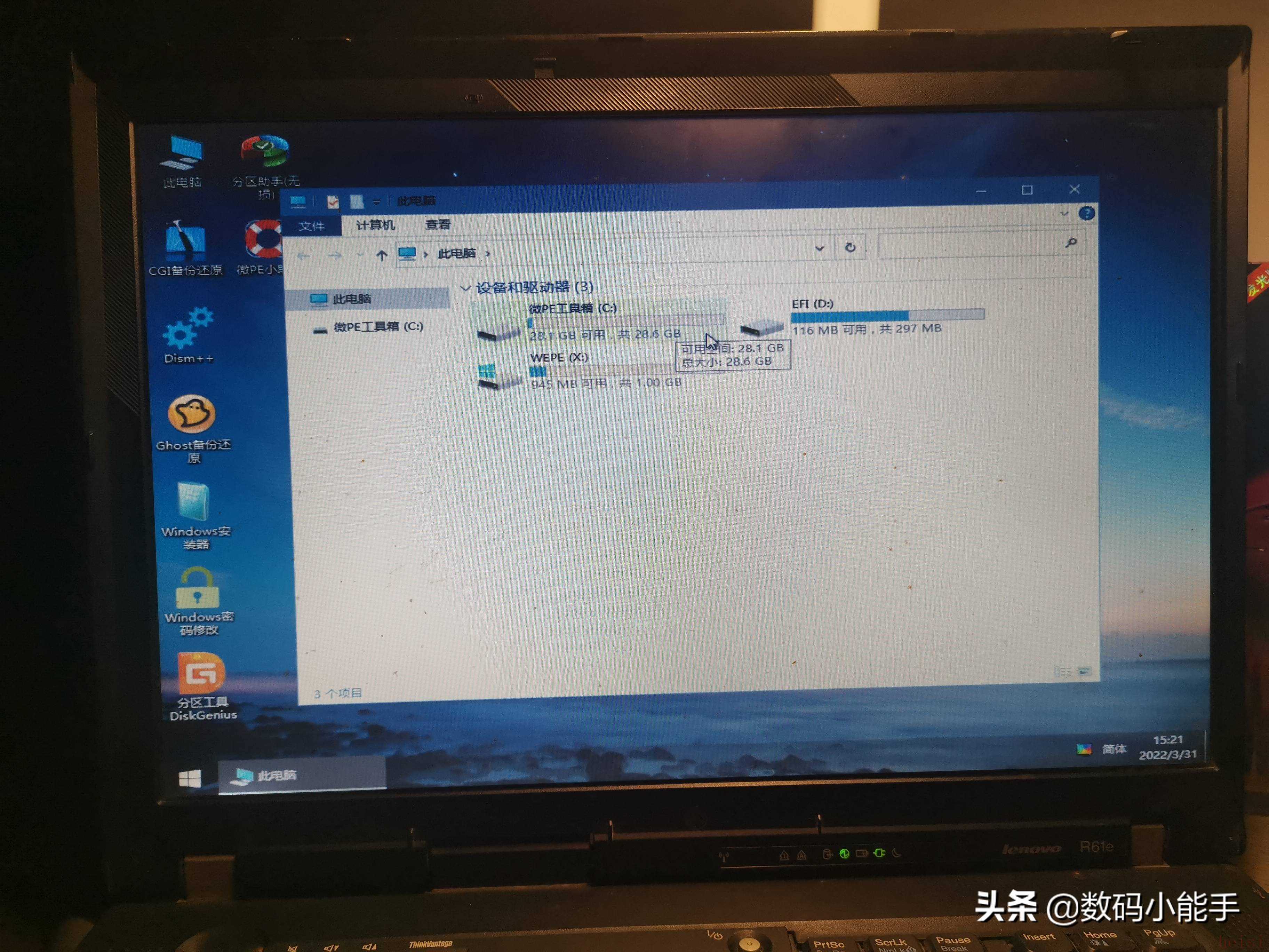 然后电脑就会自动进入我们U盘里面的PE系统了。