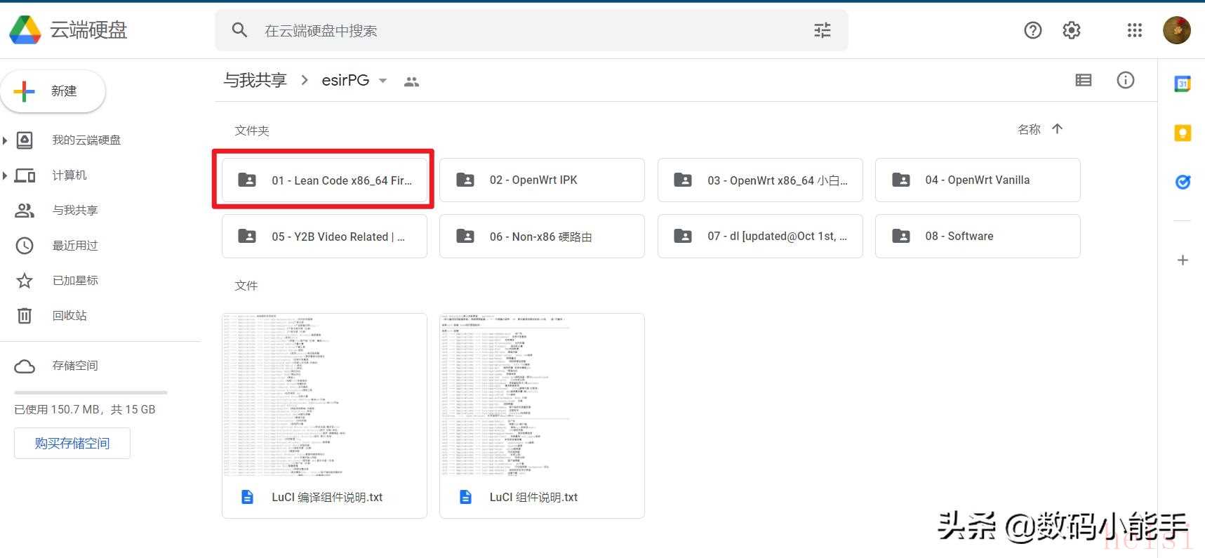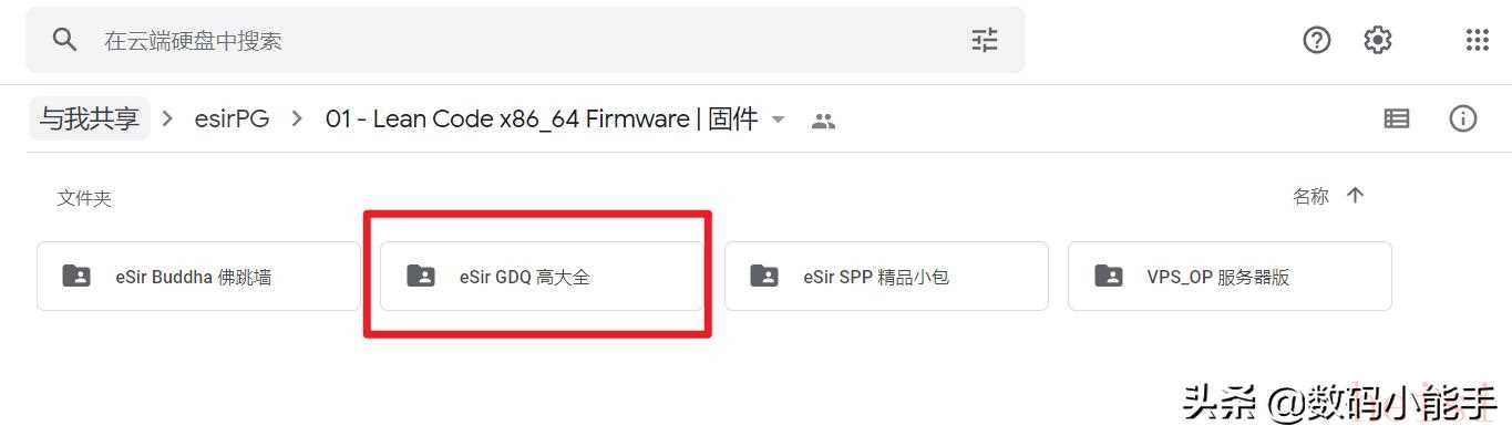 打开eSir大佬发布的固件列表,然后直接选择并双击打开【Lean Code x86-64】这个文件夹。
