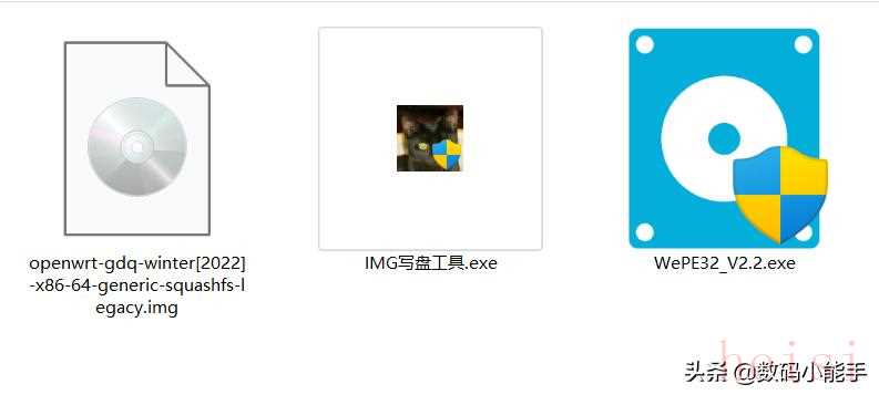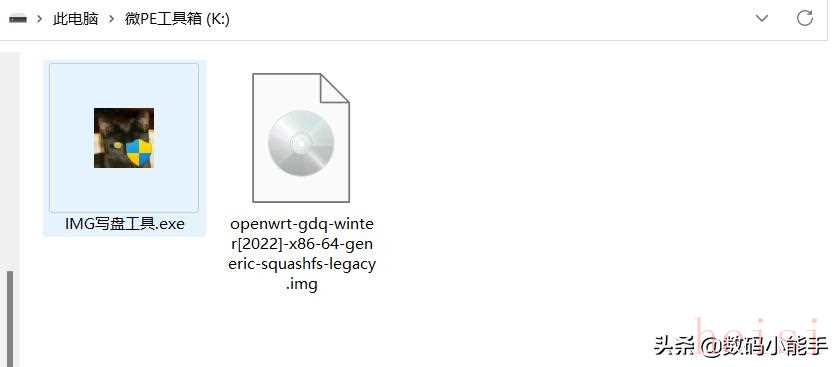 将我们第一步下载好的OpenWrt固件和IMG写盘工具复制到微PE系统的这个U盘中。