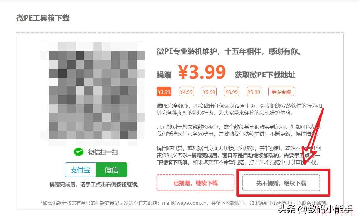 这里会让你捐赠,这个就看你个人了,当然,人家开发者也不容易,捐赠一杯奶茶钱还是可以的~~。如果你只是临时使用,也可以选择“先不捐赠,继续下载”