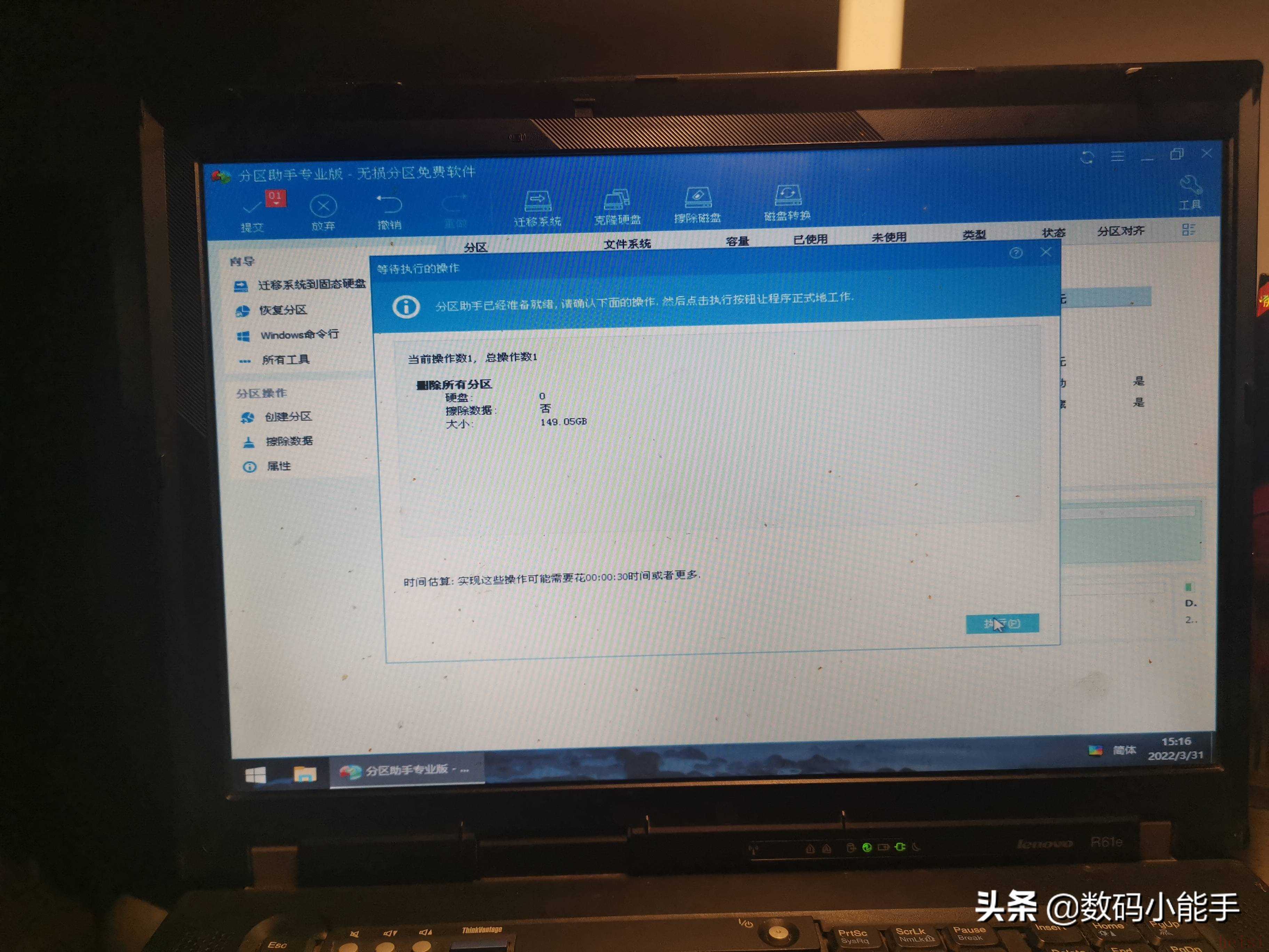 显示这个界面就说明它已经完成删除分区的操作,此时就可以关闭【分区助手】了。
