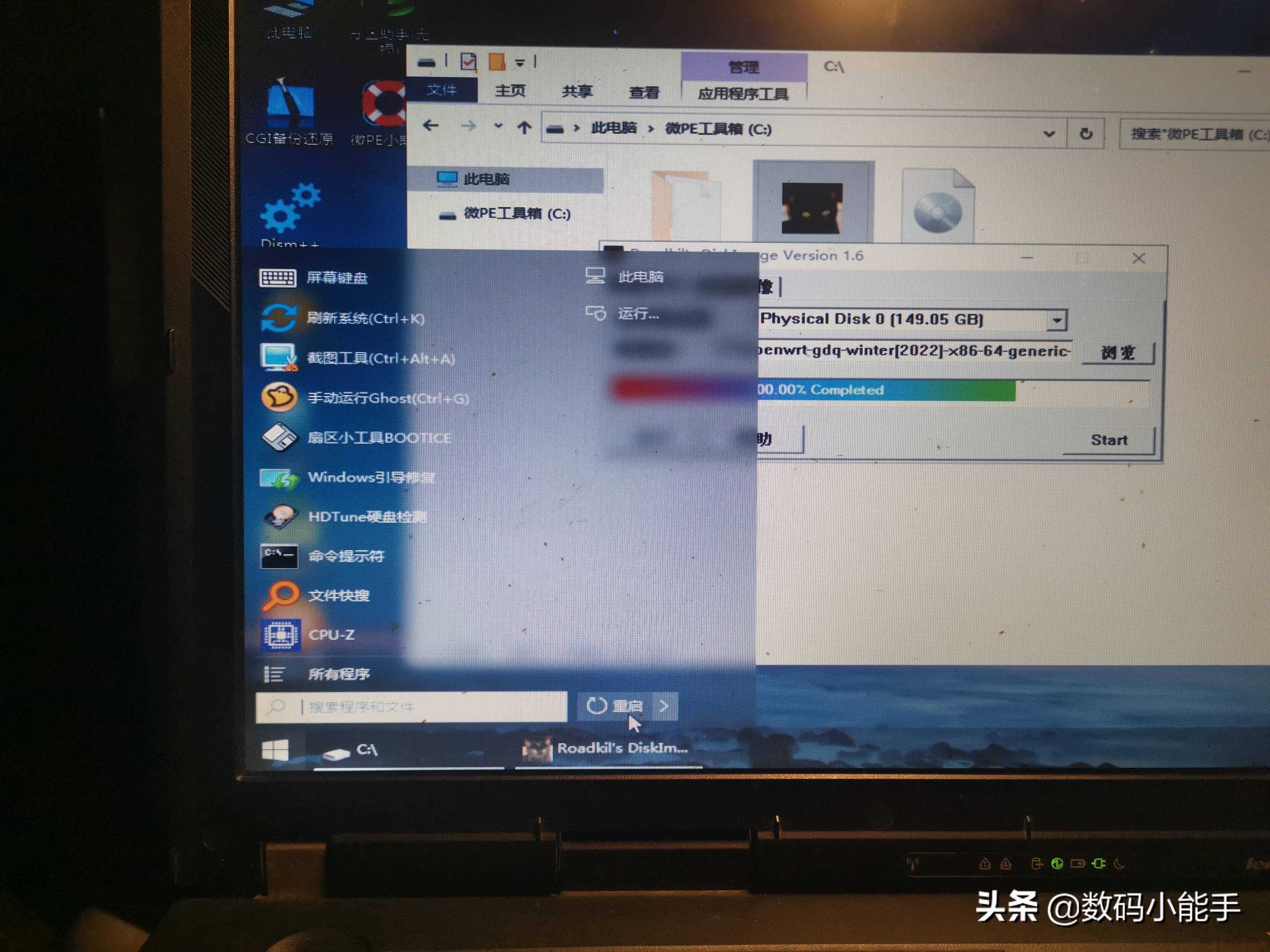 接下来它就会把我们下载下来的OpenWrt固件写到我们的电脑硬盘中。