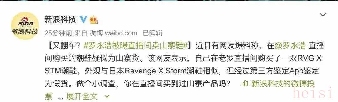 不过,新浪科技在发布罗永浩公司的澄清声明不久,又借助《又翻车?#罗永浩被曝直播间卖山寨鞋#】》的新闻,发起话题讨论,询问用户是否在罗永浩直播间买到过山寨产品?
