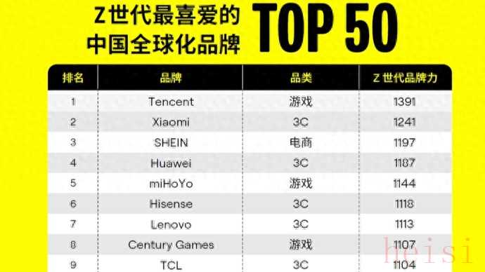 原标题:《Z世代最喜爱的中国全球化品牌50强”出炉,腾讯、小米、SHEIN居前三》