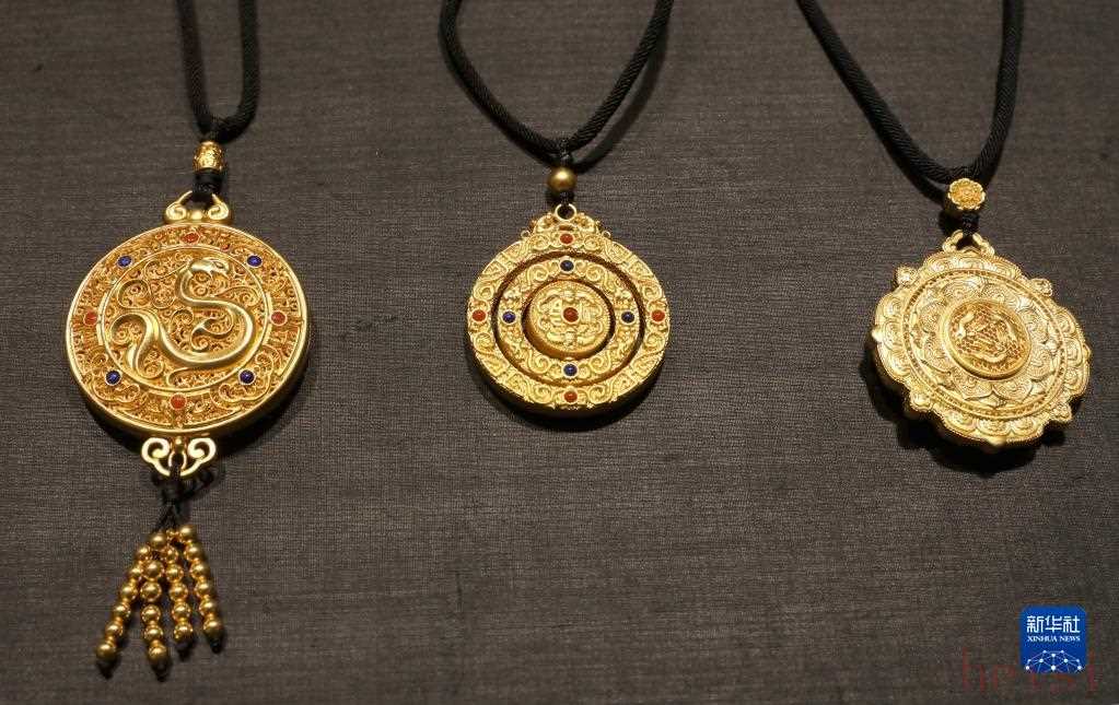 周大福生产的部分“传承”系列金饰,该系列饰品采用传统工艺,手工打磨(9月1日摄)。新华社记者 吴晓初 摄