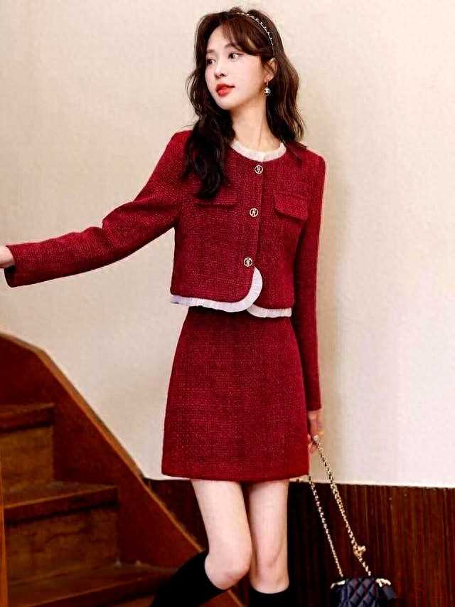 今天乱七八糟来分享一通!总有一款是你的菜!小香风先来!这酒红小香风套装绝绝子!