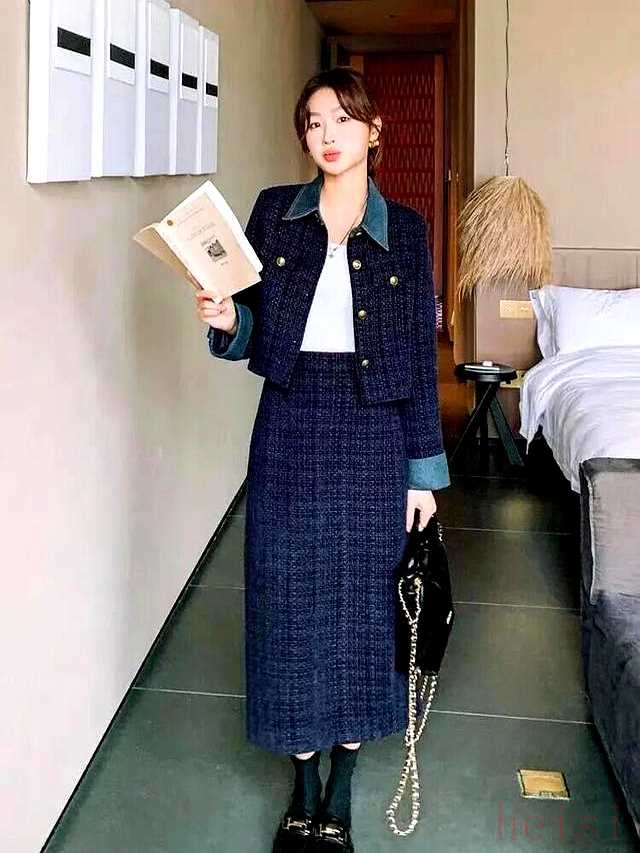 上班场合怎么稳。小香风外套换成藏蓝,扣子选哑光,下装配西装裤。领导挑不出毛病,下班后加耳环就能约会。