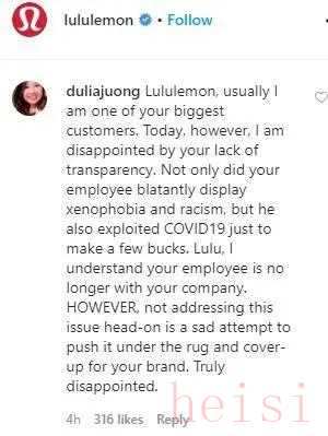 而在Lululemon的境外社交媒体官方账号上,众多亚裔网民仍然在对这个加拿大的运动服装品牌表达着失望和愤怒的情绪,要求该公司为其高管的言行道歉…….