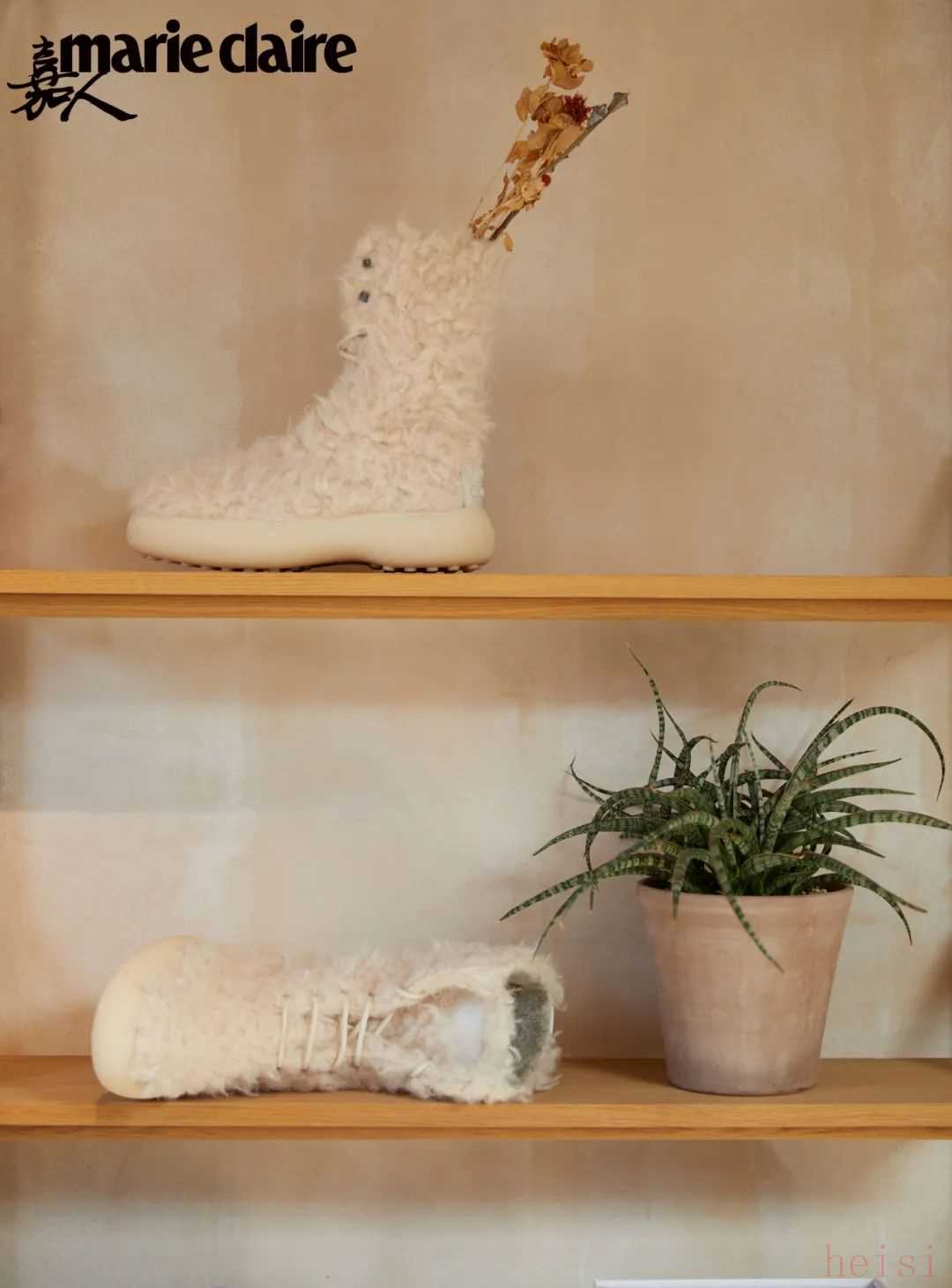 2022秋冬新款W.G.橡胶鞋底系带踝靴采用全新鞋型比例,用自然温暖的色调和皮毛材质将经典重焕新颜。