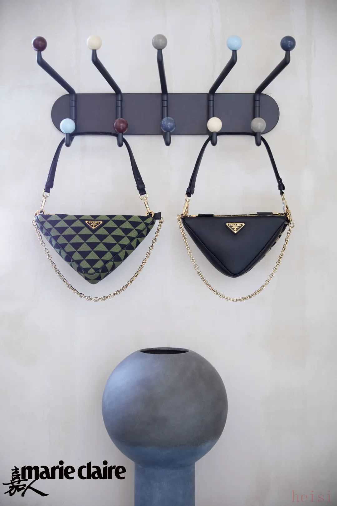 PRADA三角形初次亮相于MARIO PRADA设计的旅行箱,自此成为PRADA最具标志性的LOGO,每季以不同方式被重释。这款SYMBOLE 皮革和织物迷你手袋继承了PRADA的三角标志,由一个皮革三角形与一个织物三角形组成,既可组合也可分离为单个手提包。
