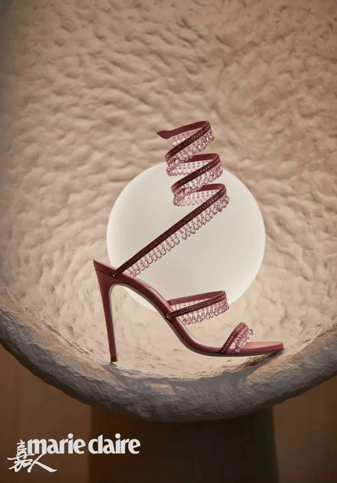 CHANDELIER系列凉鞋延续了RENE CAOVILLA最具代表性的华美水晶镶嵌和蛇形缠绕绑带,并将水晶灯般的吊坠装饰引入设计中,令每一次的移动都灵动摇曳。