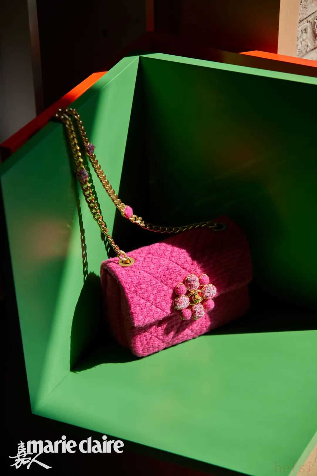 2022/2023秋冬CHANEL将永恒经典的斜纹软呢面料运用到了新的极致。全新迷你口盖包用最为吸引视觉的桃红色包裹了喀什米尔斜纹软呢包身,金色马耳他十字锁扣和链条背带上也皆以斜纹软呢点缀,为品牌经典符号斜纹软呢构建出了一种新的视觉呈现方式。