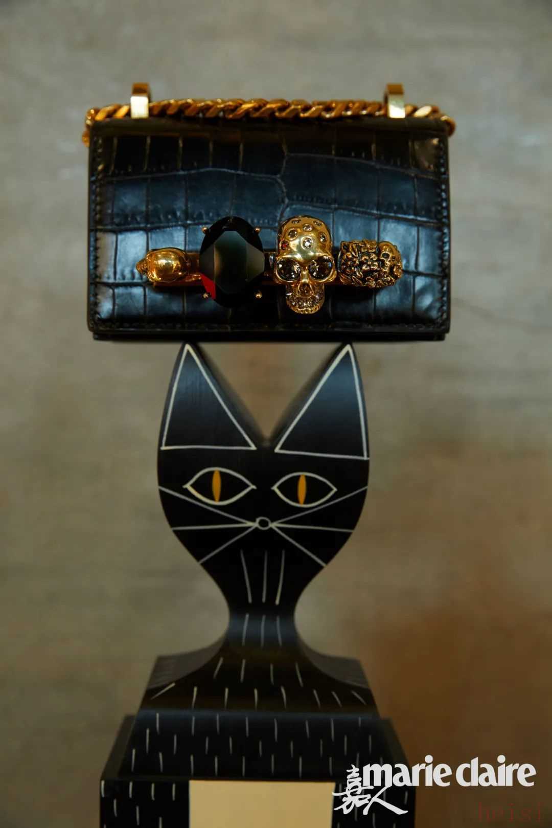 迷你JEWELLED SATCHEL手袋上引人注目的ALEXANDER MCQUEEN指环骷髅头继承了最具品牌基因的设计,让ALEXANDER MCQUEEN暗黑哥特的风格以一种更具仪式感的呈现方式焕发出新的魅力。