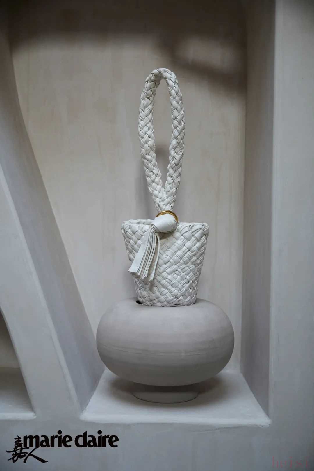 BOTTEGA VENETA推出的全新KALIMERO水桶包是新任设计师MATTHIEU BLAZY首个系列的作品。这款采用长度为55米的宽边小牛皮绳,以纯手工编织打造的水桶包廓形将BOTTEGA VENETA经典编织复杂化,使编织更加密集、繁复。这款全新的KALIMERO水桶包用单片编织面料制成,无任何车缝线,编织肩带饰以金属圆环绳扣,依靠精湛的工艺技术,对经典进行升级。