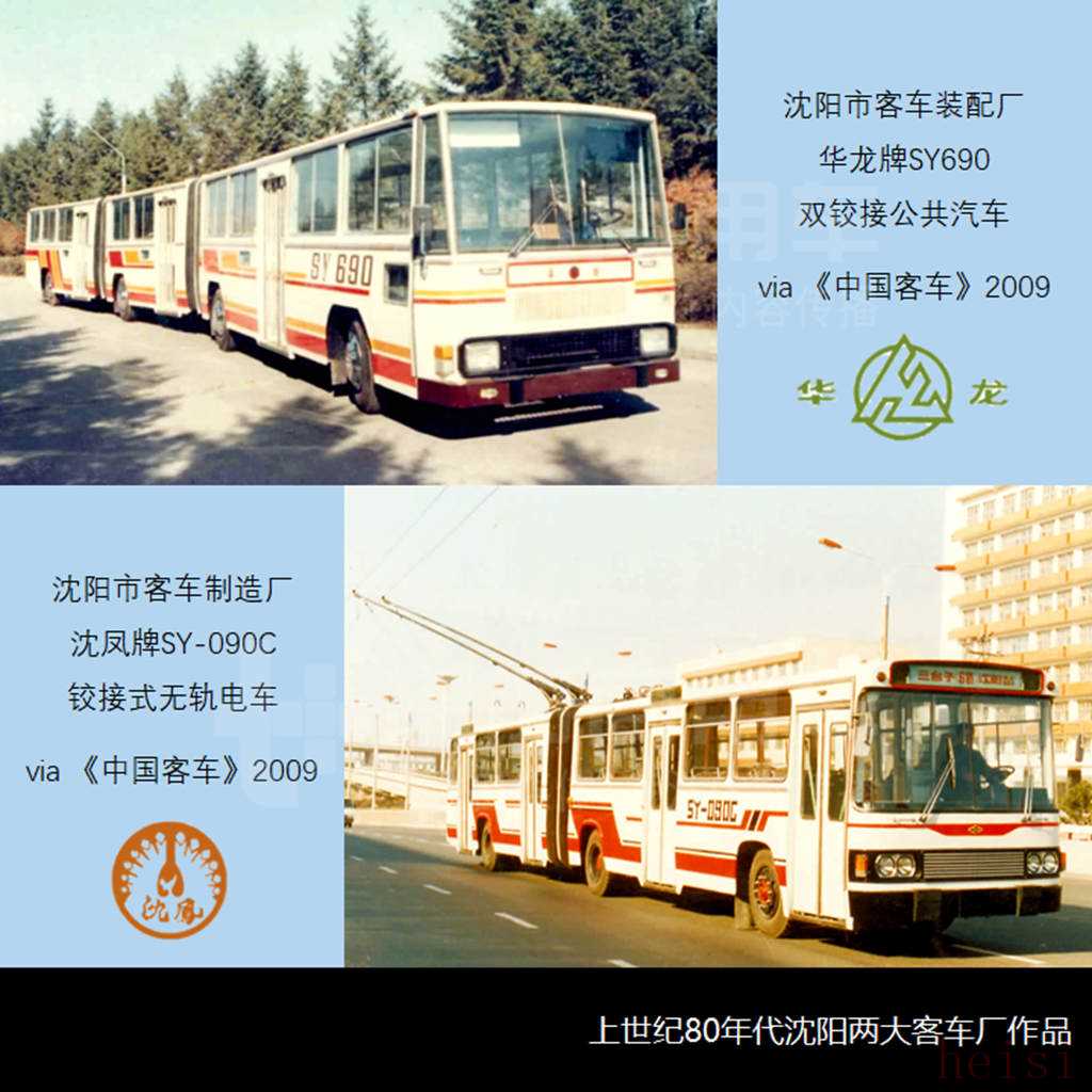 - 1953年初,沈阳市电车厂在铁西区建设大路新建电车修配厂,1957年8月合并市拖车制造厂,更名为沈阳市电车公司车辆修造厂,此即沈客厂的前身。上世纪70年代利用解放CA10B底盘和ZQ-60H直流电机改制成沈阳牌SY661A铰接式无轨电车,1984年9月改称沈阳市客车制造厂。后启用“沈凤牌”注册商标,在出口智利、阿根廷、尼泊尔的无轨电车项目中屡有出镜,并持续运行了极长时间,成为诸多“无轨迷”心头的记忆。