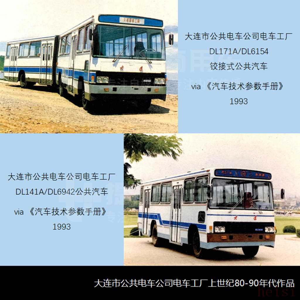 上世纪80年代,随着解放牌载重汽车的更新换代,大连电车工厂利用解放CA151D7/4底盘开发出DL171A铰接式公共汽车和DL141A公共汽车,提升了动力性、加宽了前轮距,改善了形式稳定性,全新设计了方基调外观。90年代后底盘升级为解放CA6151D7/6910D4,外观未做修改,整车型号变更为DL6145和DL6942,其中后者直至2007年才最终下线,至今仍有不少市民对其留有深刻印象。