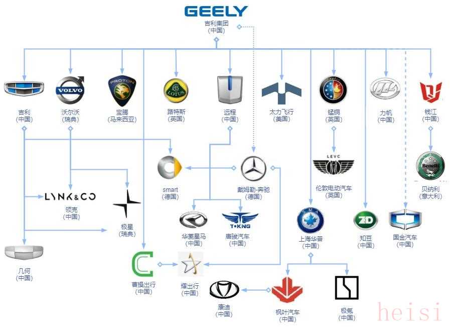 之前漫哥整理了一下吉利的品牌关系图,家大业大,如下: