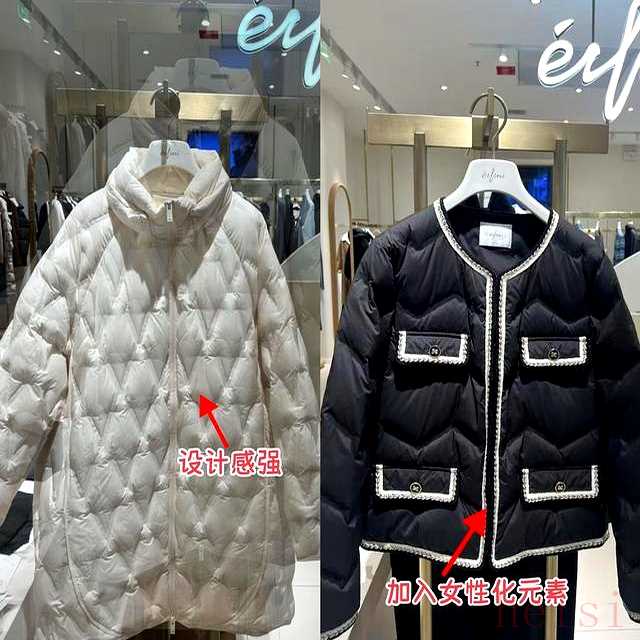 "时髦气质点:" PEACEBIRD的羽绒服设计更"多样和潮流",有很多"设计感强的配色、印花