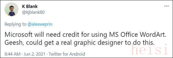 “他们得谢谢微软,毕竟用了人家MS Office艺术字。天啊,就不能找一个真正的平面设计师设计下吗。”